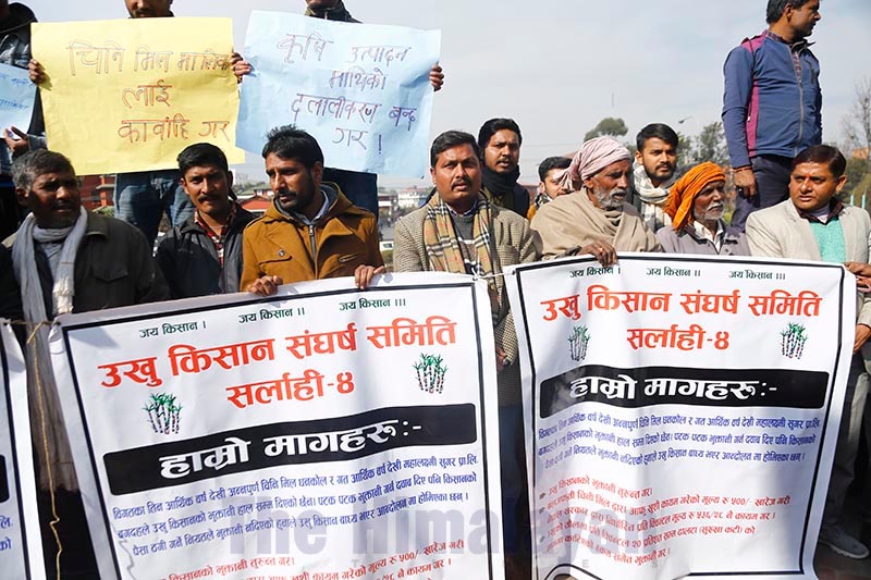 The sugarcane farmers have been staging demonstrations in Kathmandu in a daily basis demanding implementation of past deal. The sugarcane farmers and the sugar mills had signed in the five-point agreement in December last year in coordination of the government that their all past dues will be cleared within January.