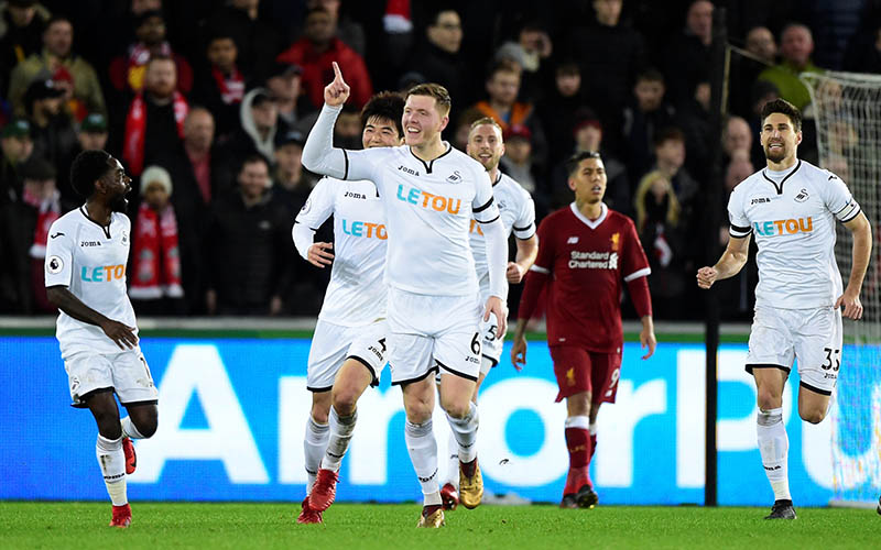 Swansea went ahead five minutes before the break when an attempt to clear by Liverpool‘s 75 million pounds ($104.88 million) defender Virgil Van Dijk landed at the feet of Mawson who swept the ball home for his sixth league goal this season.